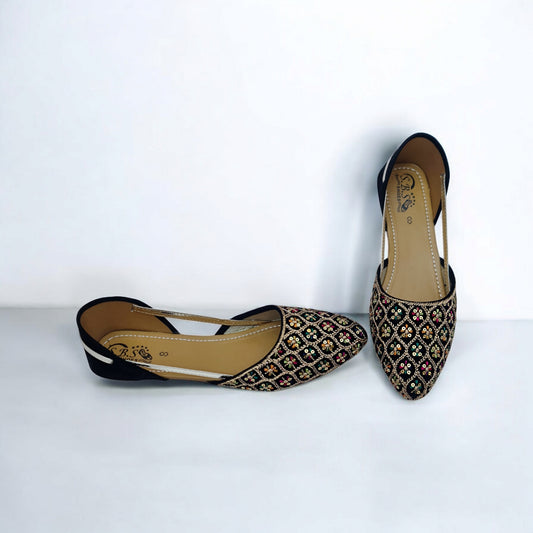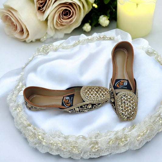 Black Embellished Khussa – Handcrafted Bridal & Festive Wear Flats