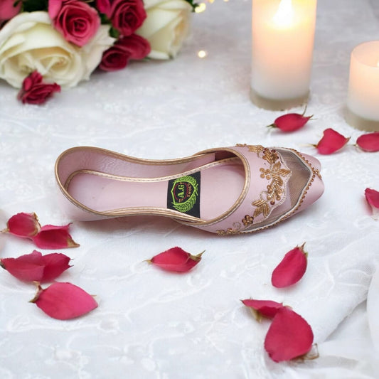 Baby Pink Net Embroidered Jutti – Handcrafted Elegance