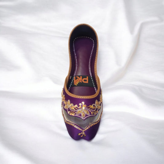 Dark Purple Net Embroidered Jutti – Handcrafted Elegance