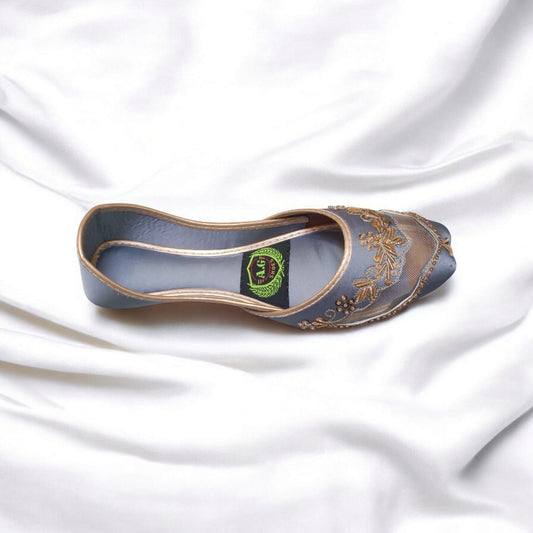 Grey Net Embroidered Jutti – Handcrafted Elegance