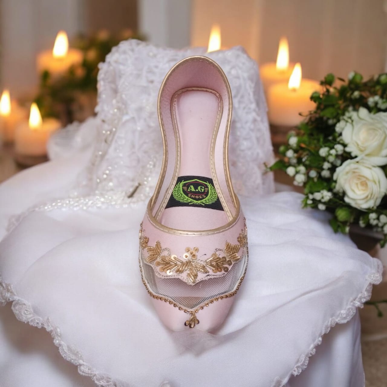 Baby Pink Net Embroidered Jutti – Handcrafted Elegance